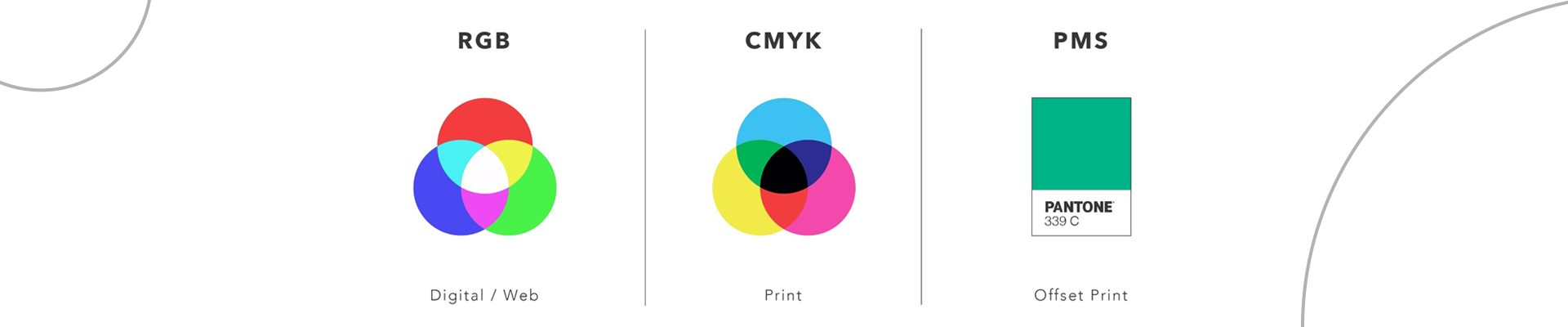 O que são? Bom, os três são sistemas de cores – algo simples, né? Mais ou menos. Um sistema de cores compreende todo um leque de, bem, cores – mas as formas como cada um funciona é diferente do outro, e cada qual tem sua aplicação correta. Então vamos direto às diferenças entre cada um!